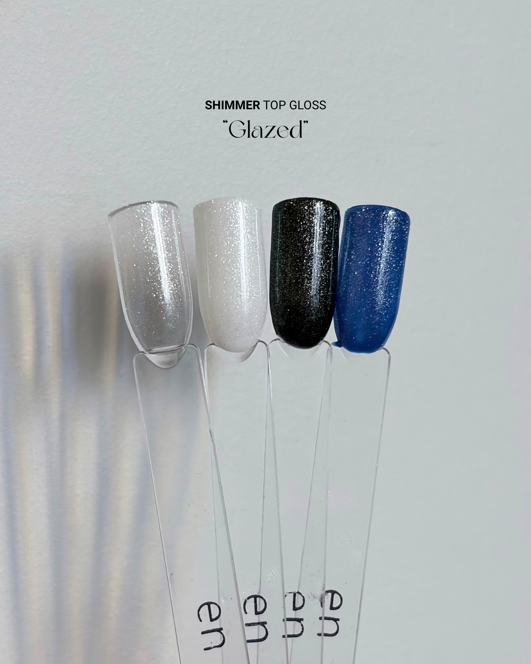 Glazed delivers a pearly blue-gold shimmer that gives any colour the ultimate glazed-donut effect - soft, luminous, and universally flattering.